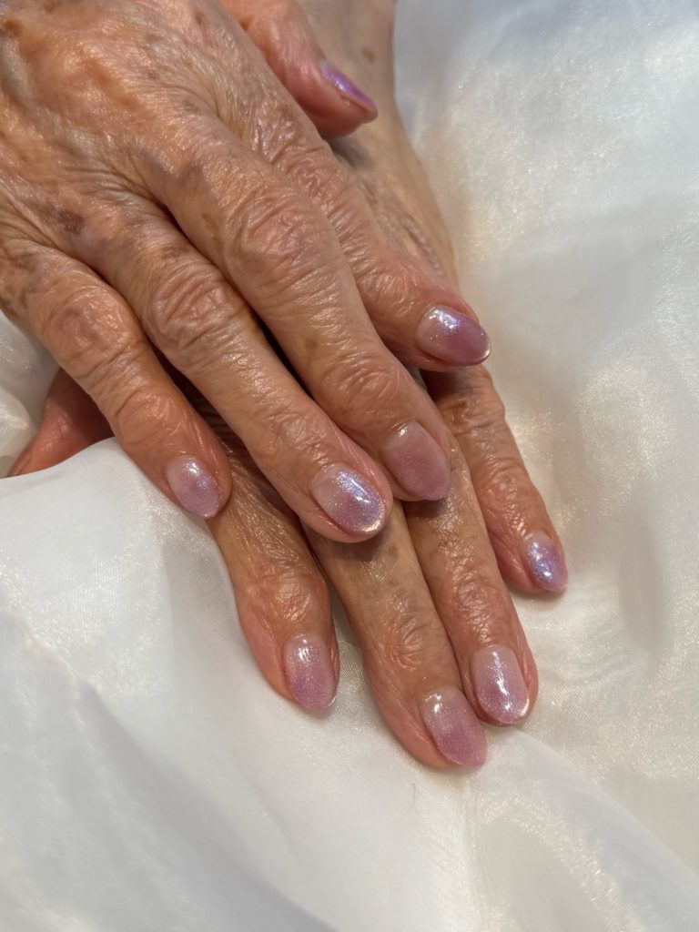 年齢を重ねた手元にもやさしく映える 上品なピンクカラー は、毎日の手元を美しく演出します。