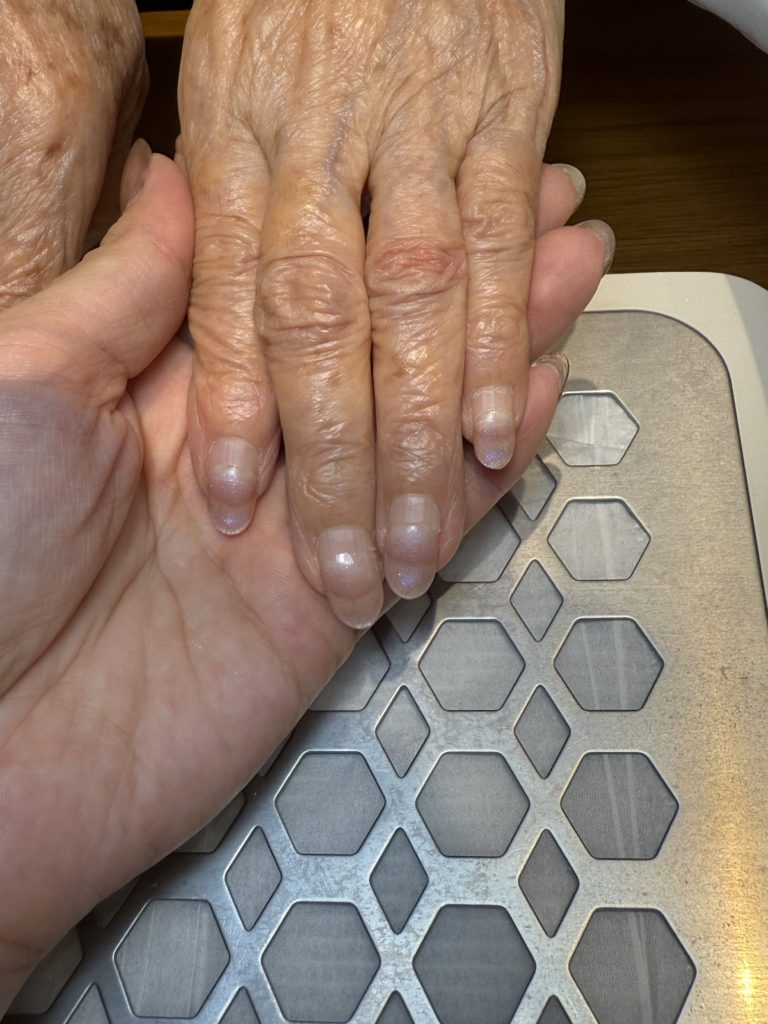 少し褪色はありますが、指先は上品で華やかに見え、お爪の健康状態も良好です。