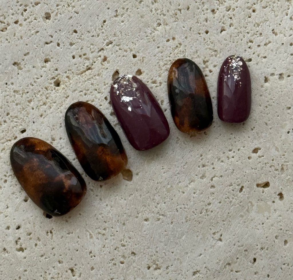クリスマス前に楽しむ“ラスト秋ネイル”|大人ボルドー×べっ甲デザインで指先にぬくもりを