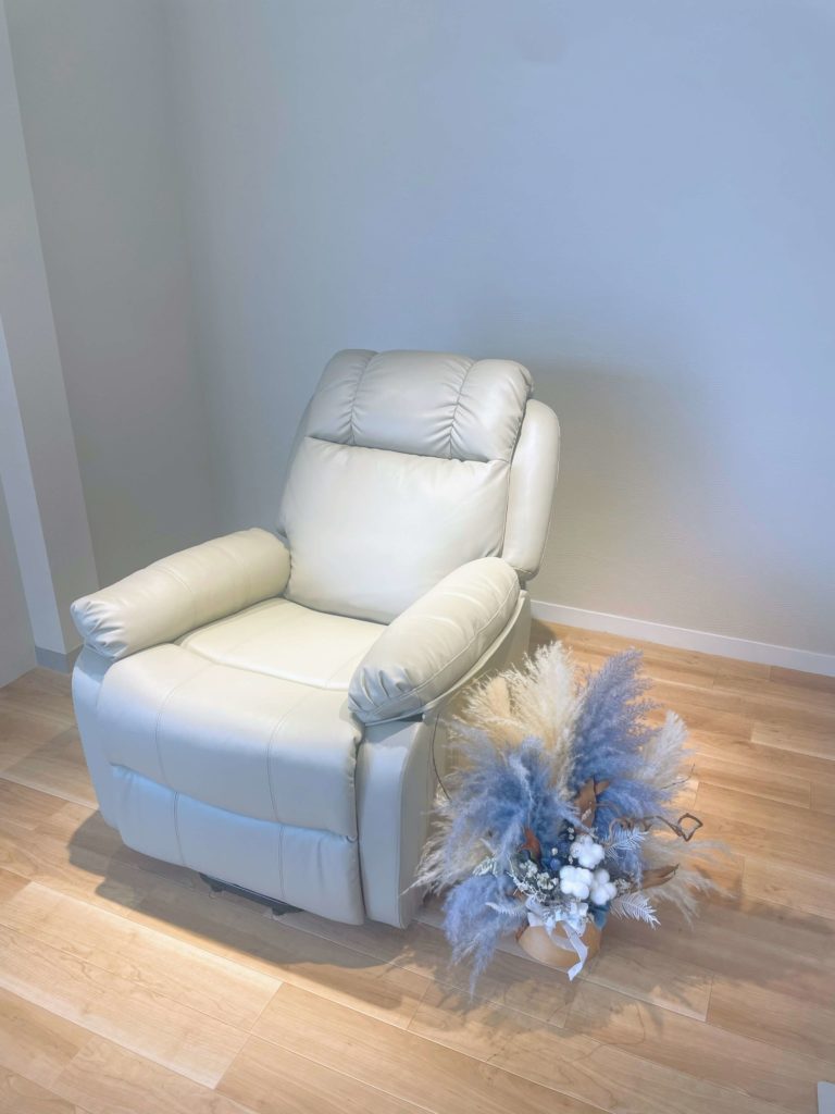 ソファはゆったりお寛ぎいただけるリクライニングソファ。快適な姿勢で過ごしていただけます。